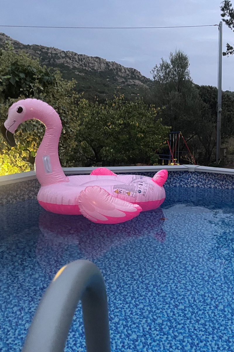La piscina ha un diametro di 3,6 mt e una profondità di 1 mt circa. Viene filtrata con un filtro a sabbia che resta acceso h24 per 7 giorni su 7.